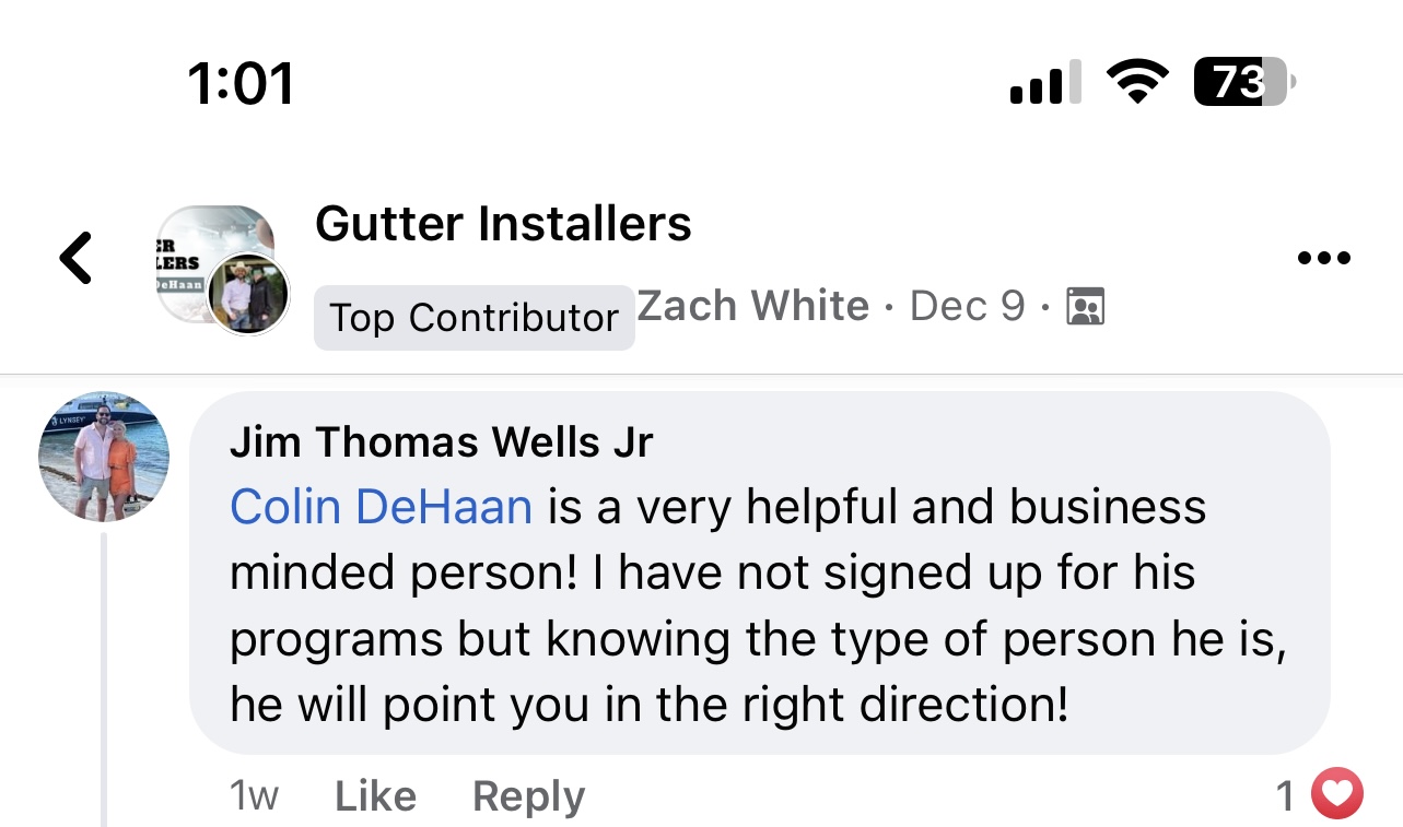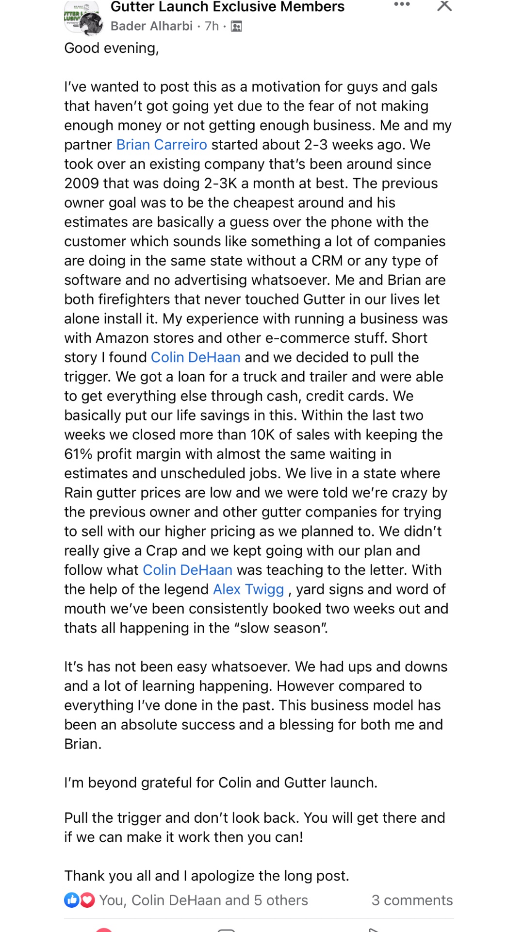 My name is Colin DeHaan and I'm an expert in the Gutter Business World.